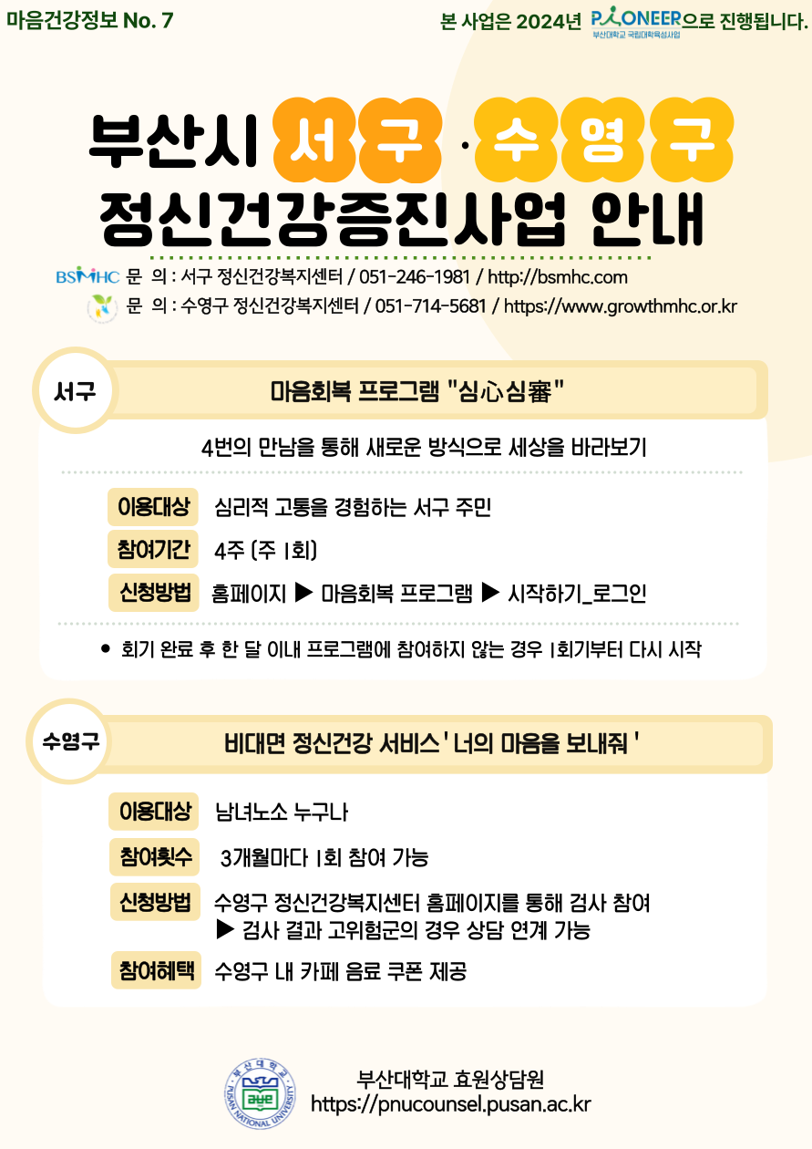 2024년 [마음건강정보안내 No. 7] 부산광역시 서구/수영구 정신건강복지센터