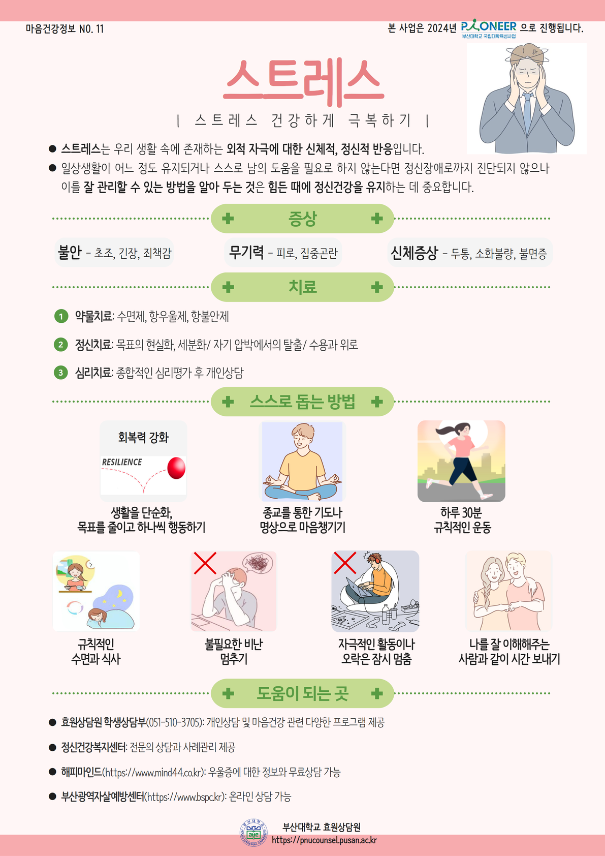 fnctId=bbs,fnctNo=17054 2024년 [마음건강정보안내 No. 11] 스트레스 date 2024.10.14 name 효원상담원 e-mail view 48 첨부파일 첨부파일이(가) 없습니다.
