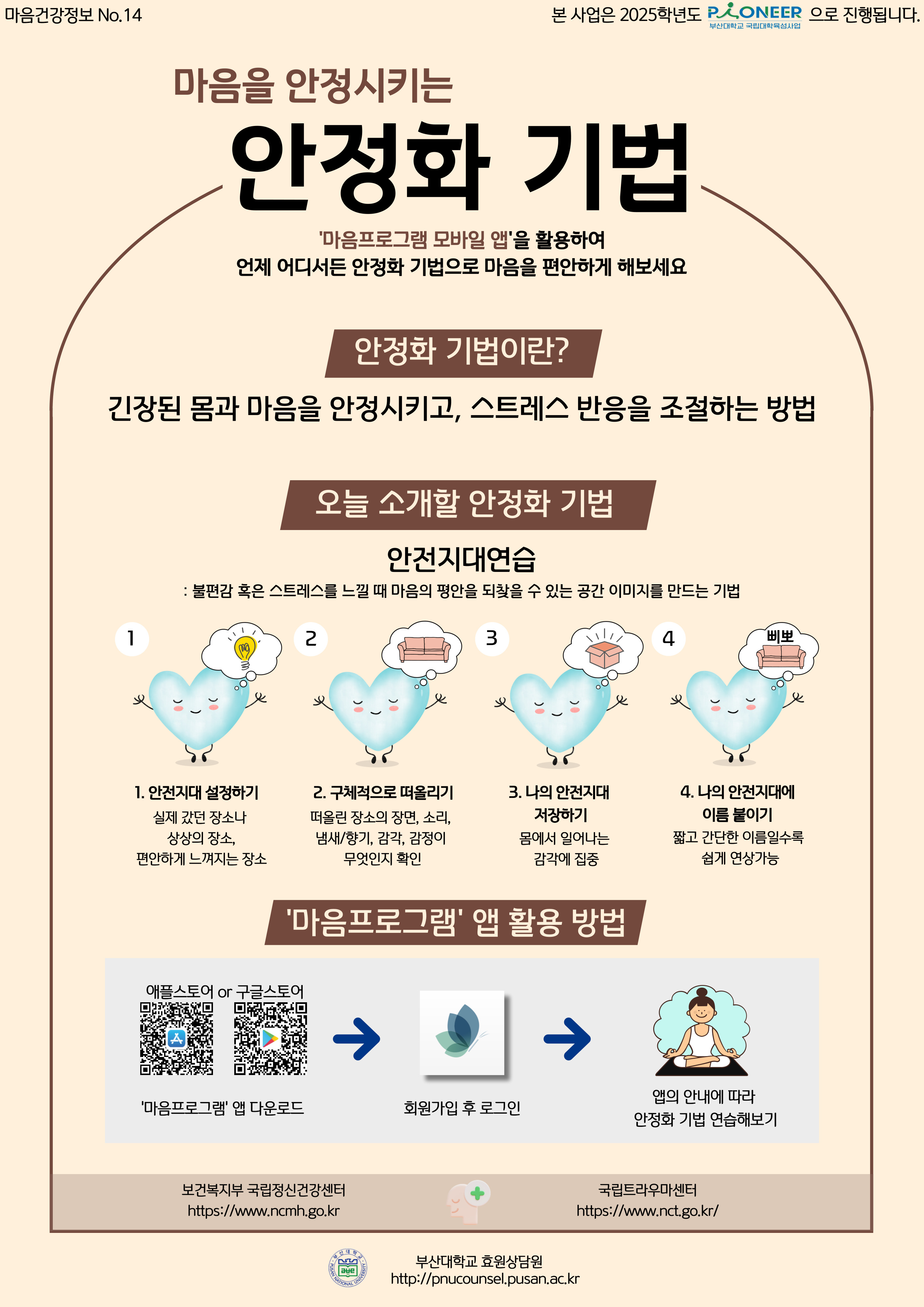 2025년 [마음건강정보안내 No.14] 안정화 기법 안내(안전지대연습)