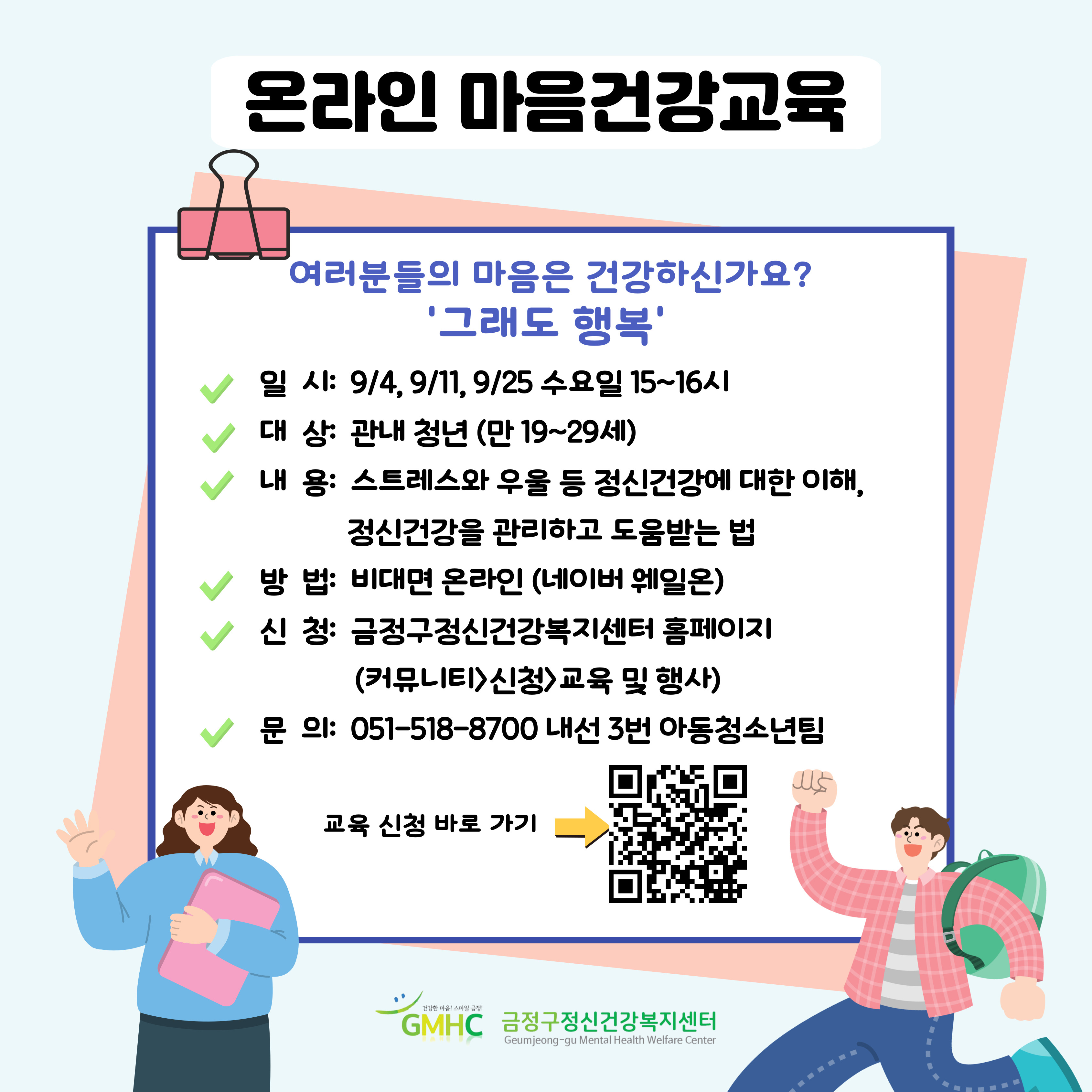 [금정구정신건강복지센터] 9월 청년대상 온라인 마음건강교육 안내